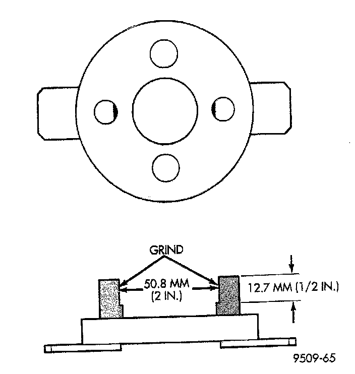 2. Modify Special Tool C-4687-1 as shown in image above. Hold camshaft sprocket with modified tool while removing/installing bolt. Remove sprocket from camshaft.