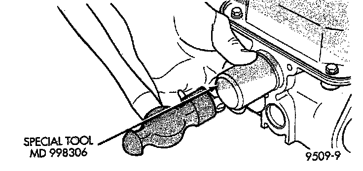 5. Install camshaft seal flush with cylinder head using Special Tool MD 998306.