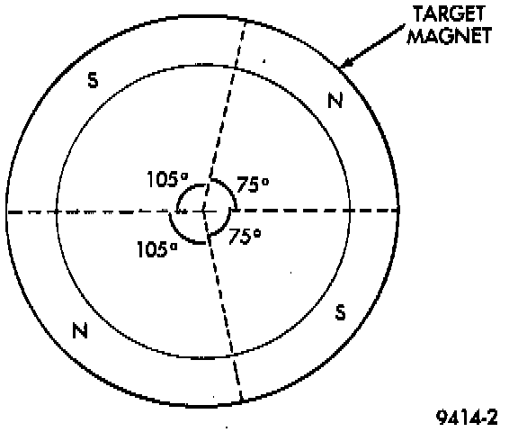 The sensor output switch switches from high (5.0 volts) to low (0.5 volts) as the target magnet rotates.
