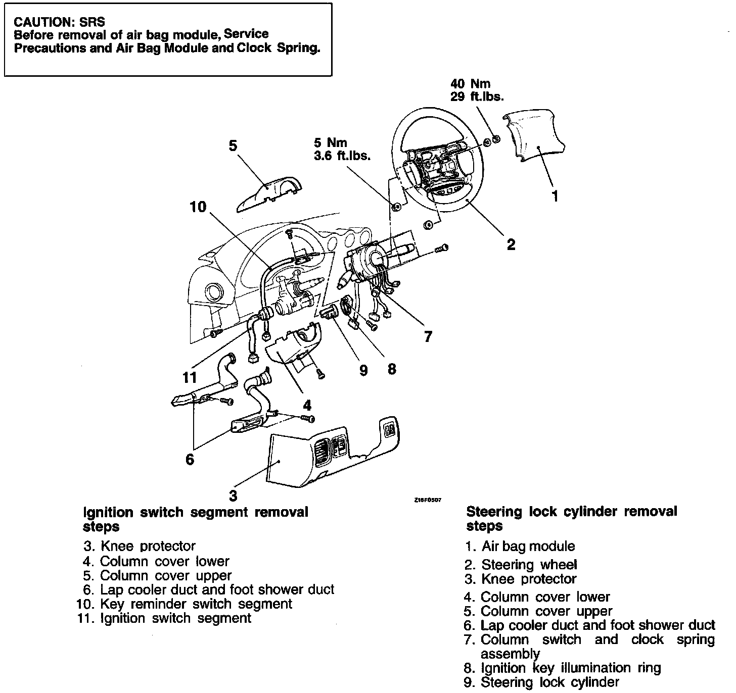 CAUTION: Before removal of air bag module, refer Service Precaution and Air Bag Module and Clock Sprinig.