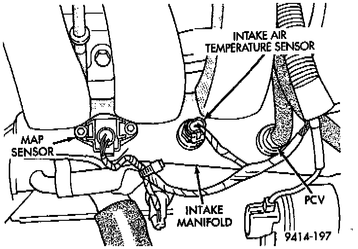 The Intake Air Temperature (IAT) sensor measures the temperature of the intake air as it enters the engine. The sensor supplies one of the inputs the PCM uses to determine injector pulse width and spark advance. The IAT sensor threads into the intake manifold Figs. 3.