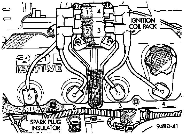 6. Transfer spark plug cables to new coil pack. The coil pack towers are numbered with the cylinder identification. Be sure the ignition cables snap onto the towers.