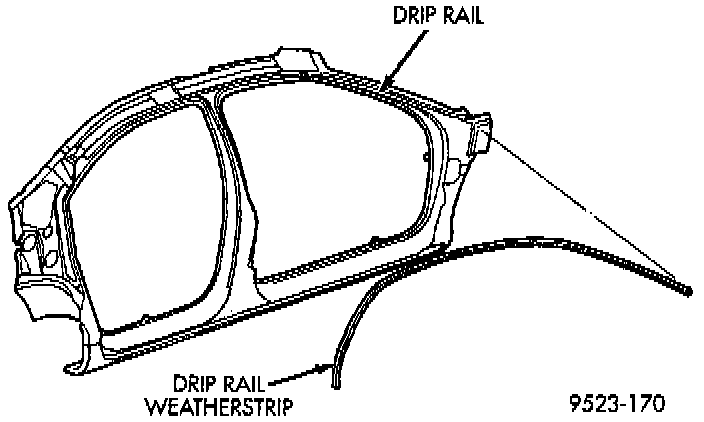 3. Pull the drip rail weatherstrip from the roof rail pinch flange above door openings.
