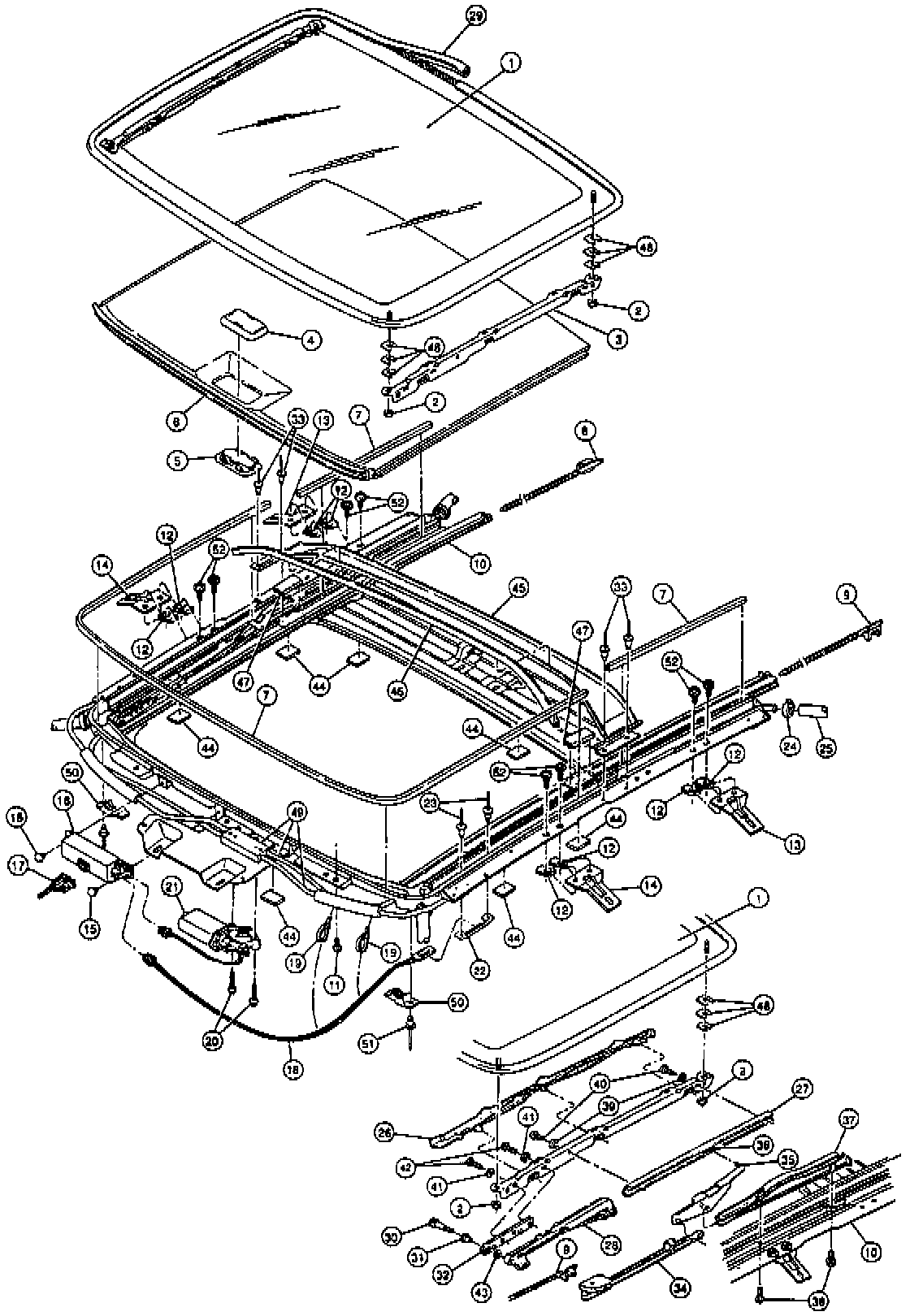 SUNROOF COMPONENT LEGEND AND TORQUE