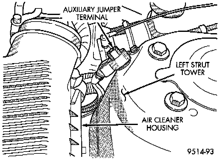 2. Disconnect negative cable from auxiliary jumper terminal Fig. 1.