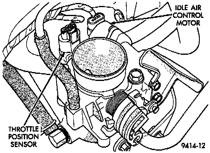 Fig. 2 Idle Air Control (IAC) Motor And Throttle Position Sensor (TPS) Wiring Connectors And Vacuum Hose Connection: