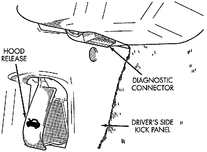 2. Connect the DRB scan tool to the diagnostics connector. The diagnostics connector is located under the lower instrument panel next to the left kick panel.