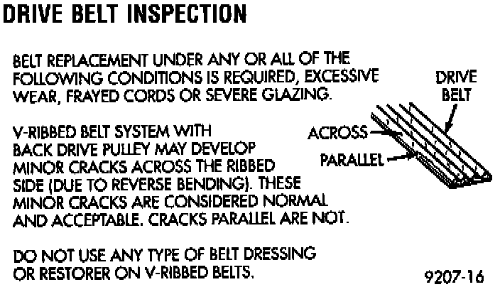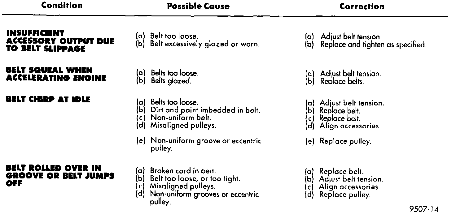 Satisfactory performance of the belt driven accessories depends on belt condition and proper belt tension.