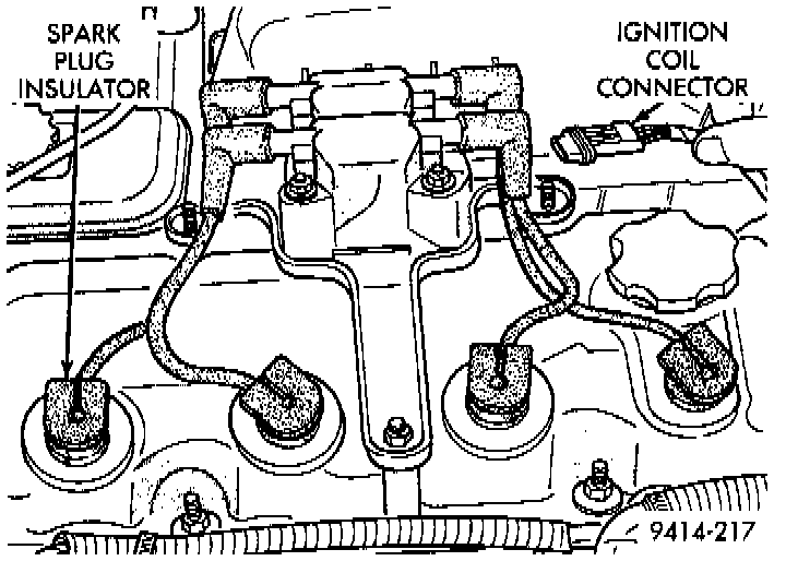 9. Inspect the ignition coil electrical connector. Ensure the spark plug insulators are firmly seated over the spark plugs.