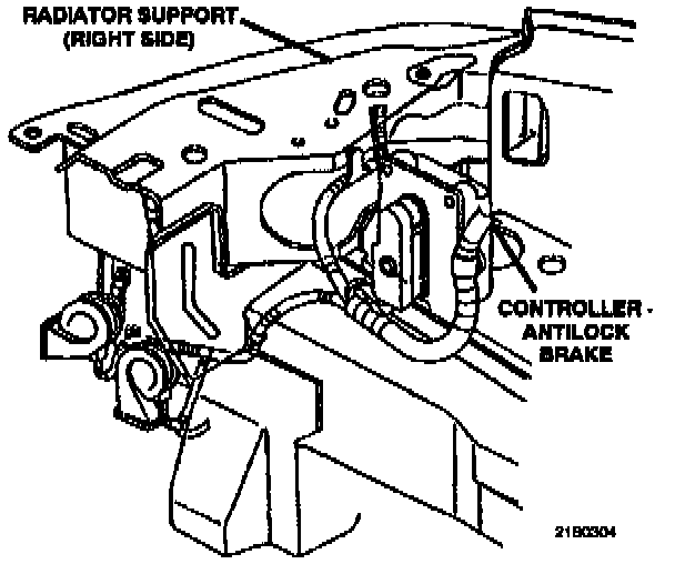 The controller is located on the right side of the radiator support.
