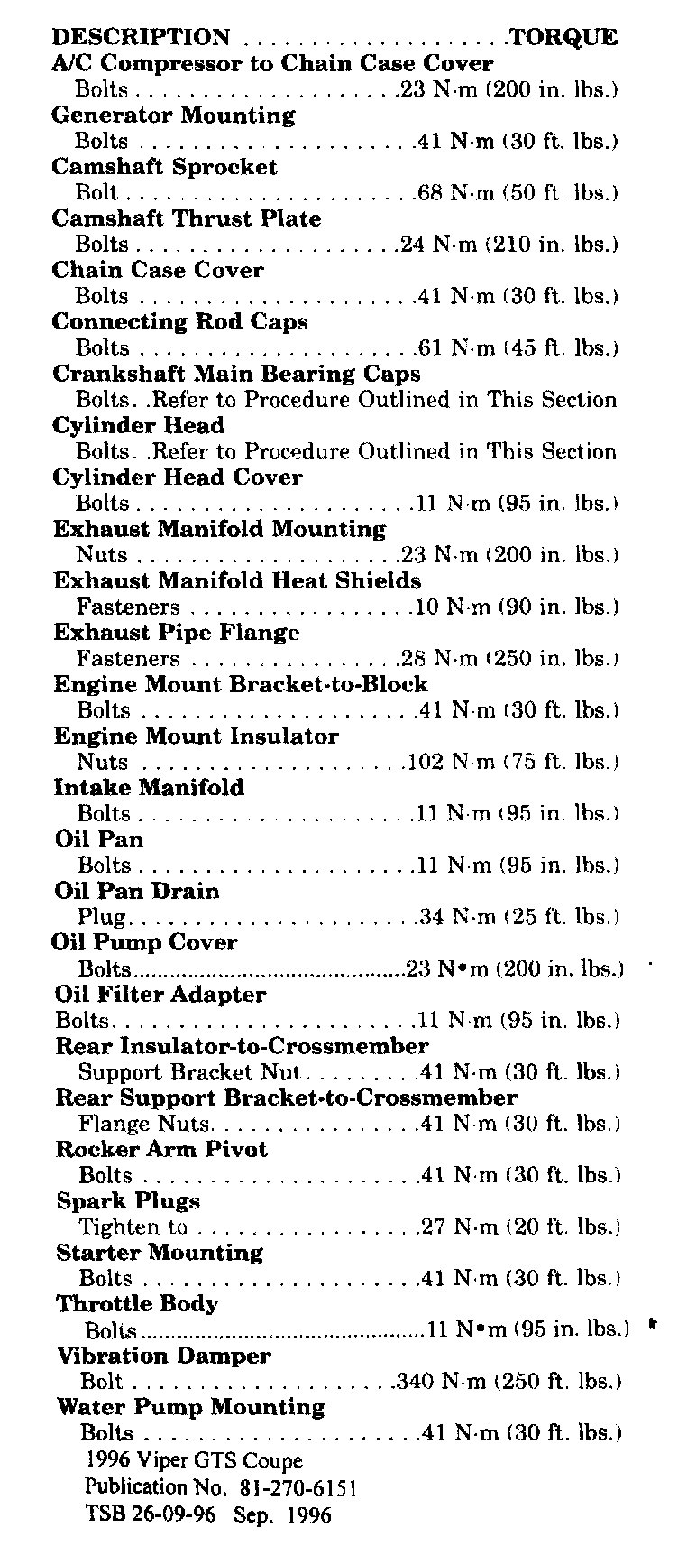 Tightening Specifications