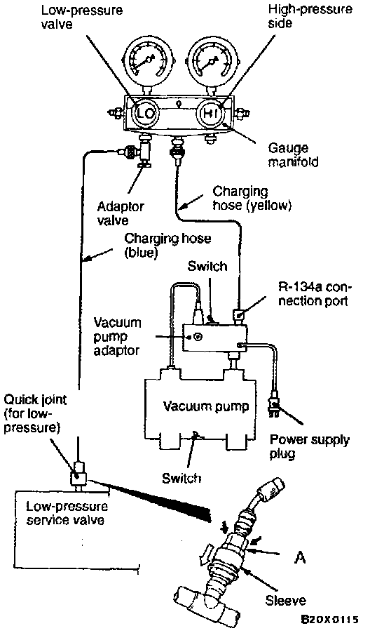 12. Turn the vacuum pump adaptor switch to the R-134a side to start the vacuum pump.