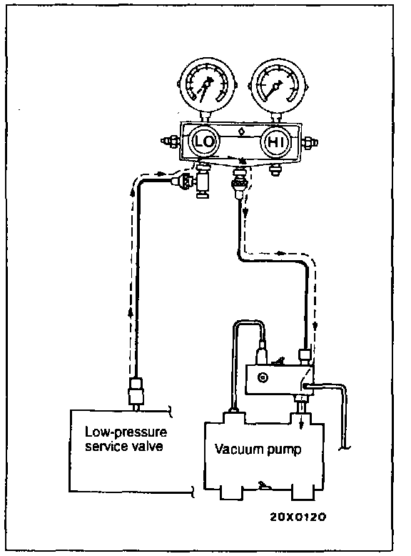 13. Evacuate to a vacuum reading of 100 kPa (29.5 in Hg) or higher (takes approx. 10 minutes).