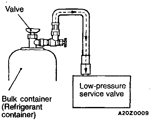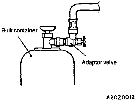 CAUTION: Always keep the bulk container upright. If it is turned upside down, the compressor may be damaged by liquid refrigerant.