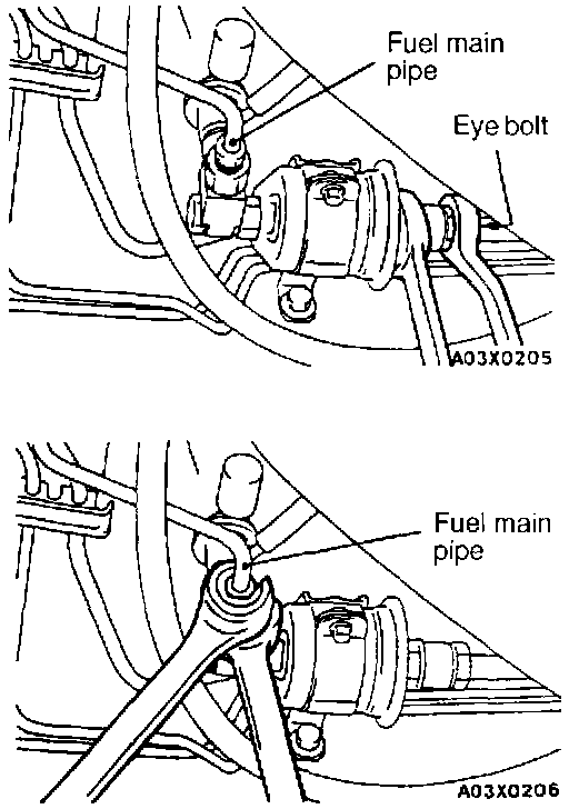 CAUTION: As there will be some pressure remaining in the fuel pipe line, cover eye bolt with a rag to prevent fuel from spraying.