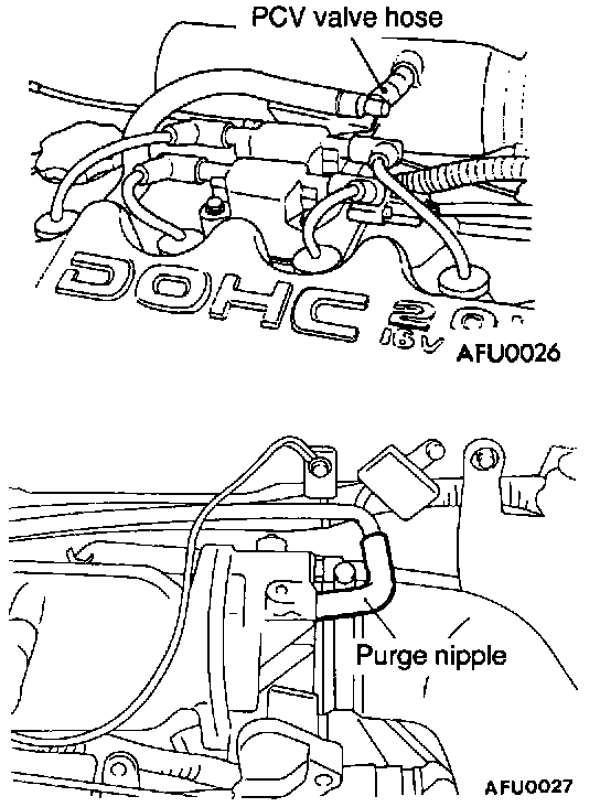 2. Disconnect the PCV valve hose from the intake manifold nipple.
