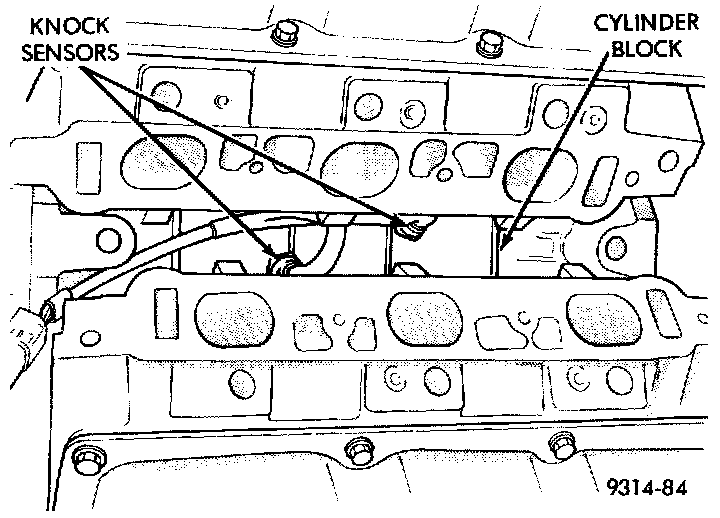 This engine has two knock sensors. One sensor for the right bank of cylinders, one for the left bank. The knock sensors thread into the top of the cylinder block below the cylinder heads (Fig. 16). When a knock sensor detects a knock in one of the cylinders, it sends an input signal to the PCM. In response, the PCM retards ignition timing by a scheduled amount.