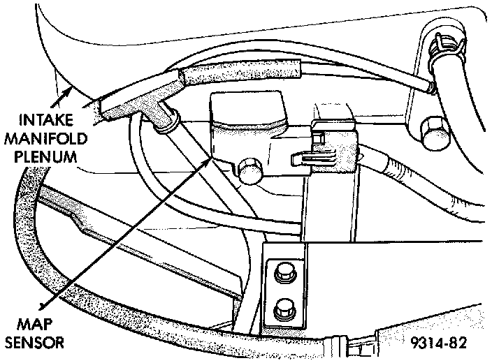 NOTE: The MAP sensor threads into the left side of the intake manifold plenum (Fig. 45).