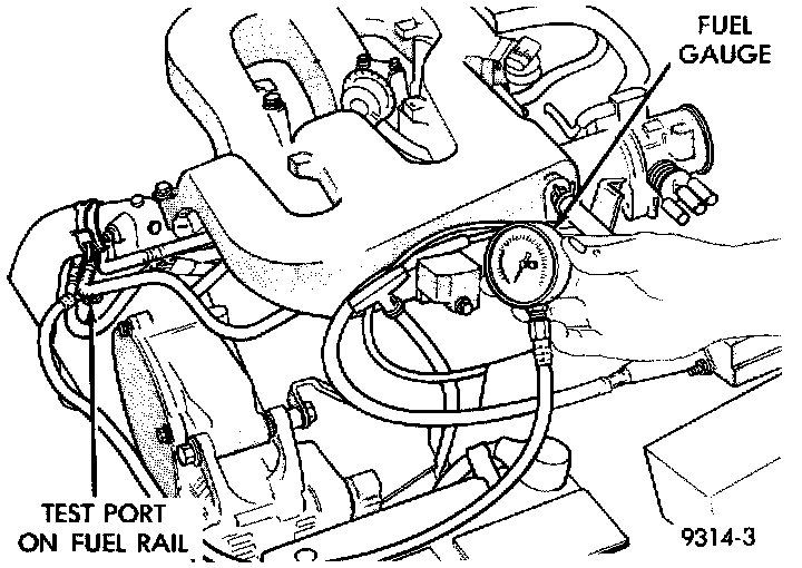 5. If the gauge reading equals the specification listed in the Fuel System Pressure chart, further testing is not required. If pressure is not correct, record the pressure and remove gauge.