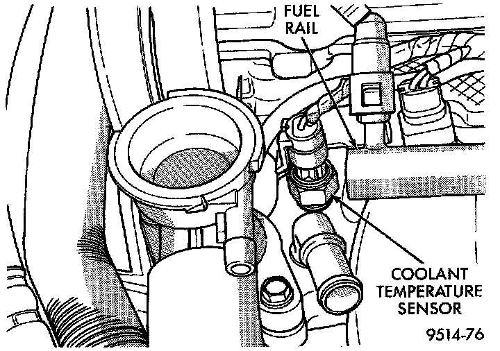 15. Check the electrical connections at the camshaft position sensor and engine coolant temperature sensor.