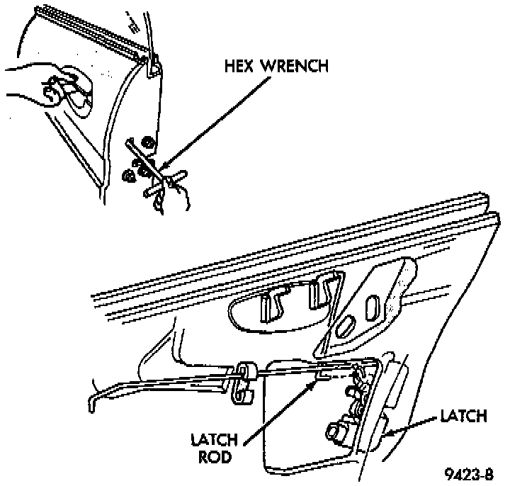 4. Raise glass to top of travel and adjust glass to fit the B-pillar seal. Glass to B-pillar applique gap should be approximately 13 mm (1/2 inch).