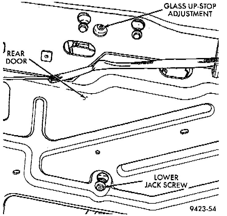NOTE: The top edge of the door glass should be beneath the lip of the weatherstrip
