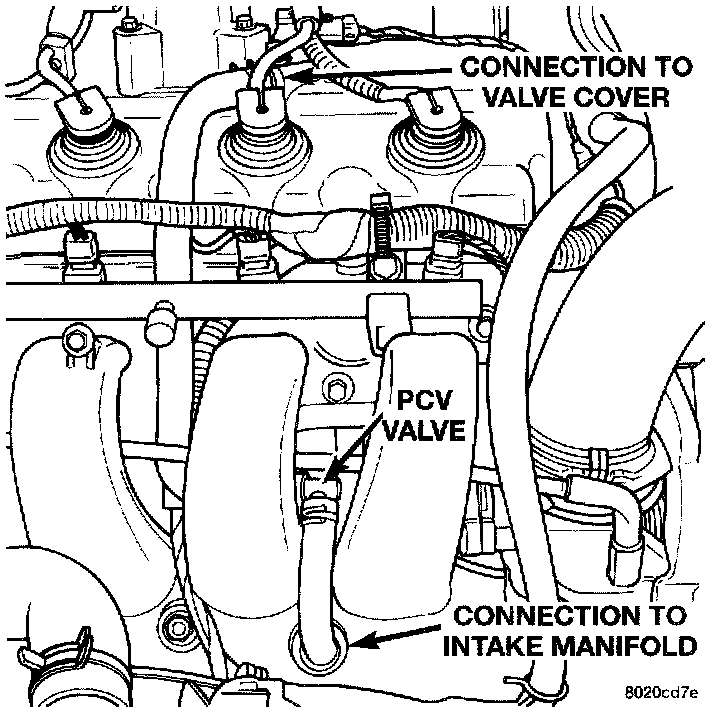 6. Check hose connections between the PCV valve, vacuum port - intake manifold and the oil separator.