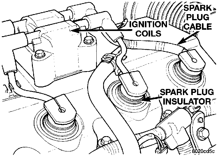 9. Inspect the ignition coil electrical connector. Ensure the spark plug insulators are firmly seated over the spark plugs.