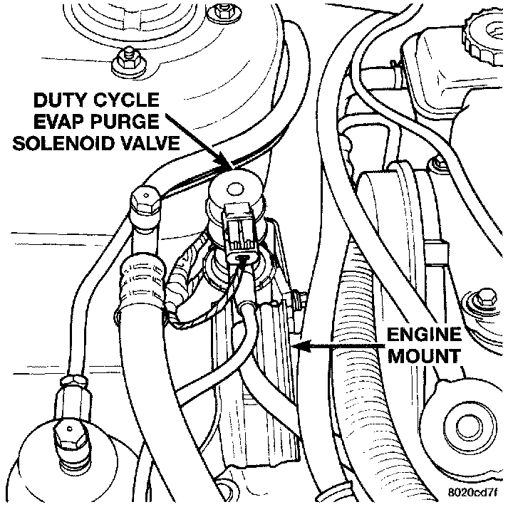 10. Inspect the electrical and hose connections at the duty cycle purge solenoid.