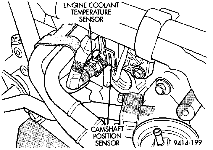 15. Check the electrical connections at the camshaft position sensor and engine coolant temperature sensor.