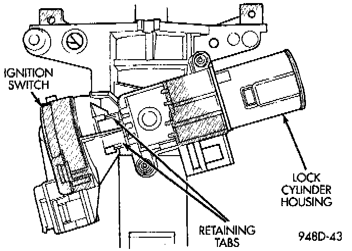 6. Depress retaining tabs and pull ignition switch from steering column.