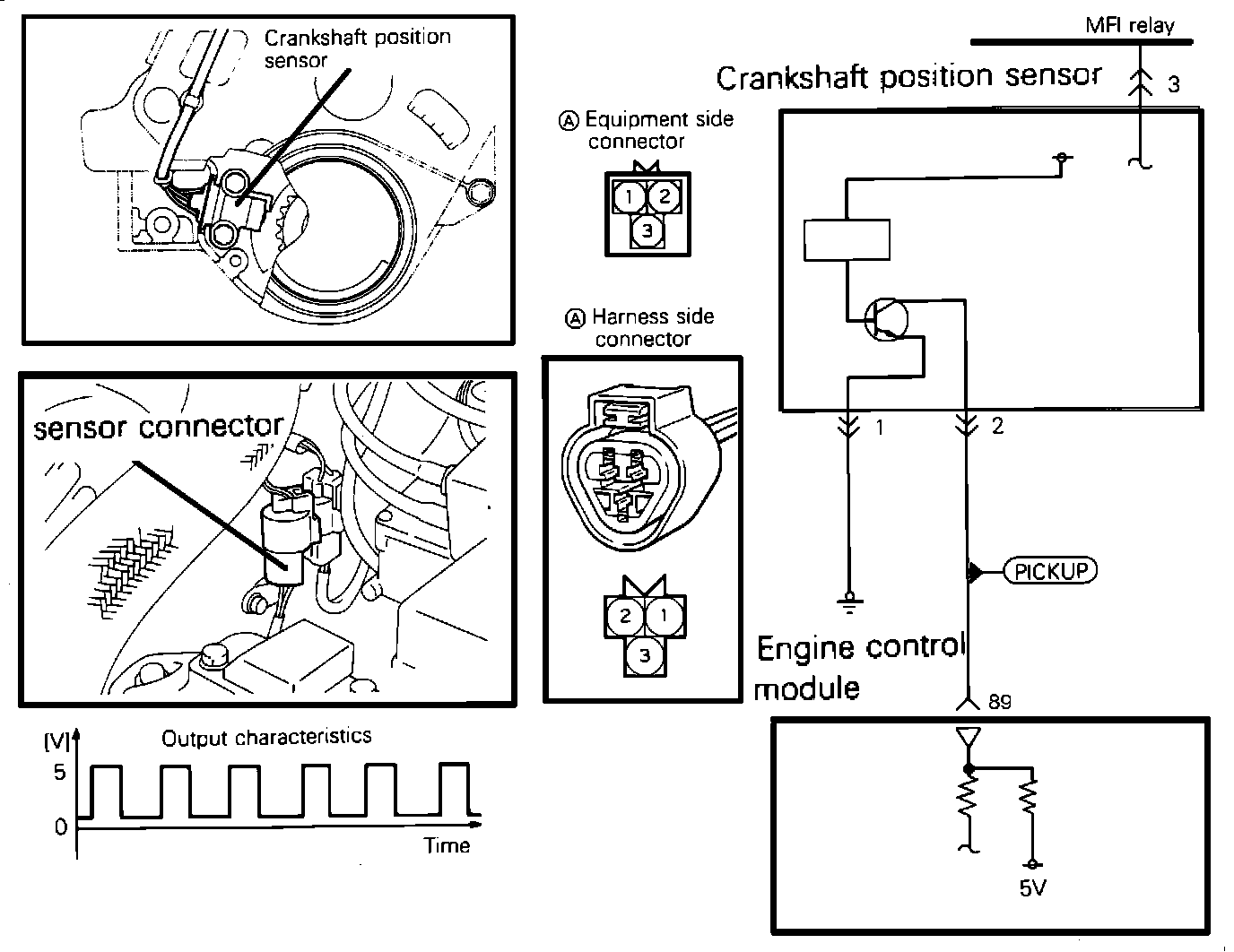 The Electronic Control Module (ECM) uses this input to determine engine speed and TDC, and adjusts ignition timing, fuel injection, and idle speed accordingly.