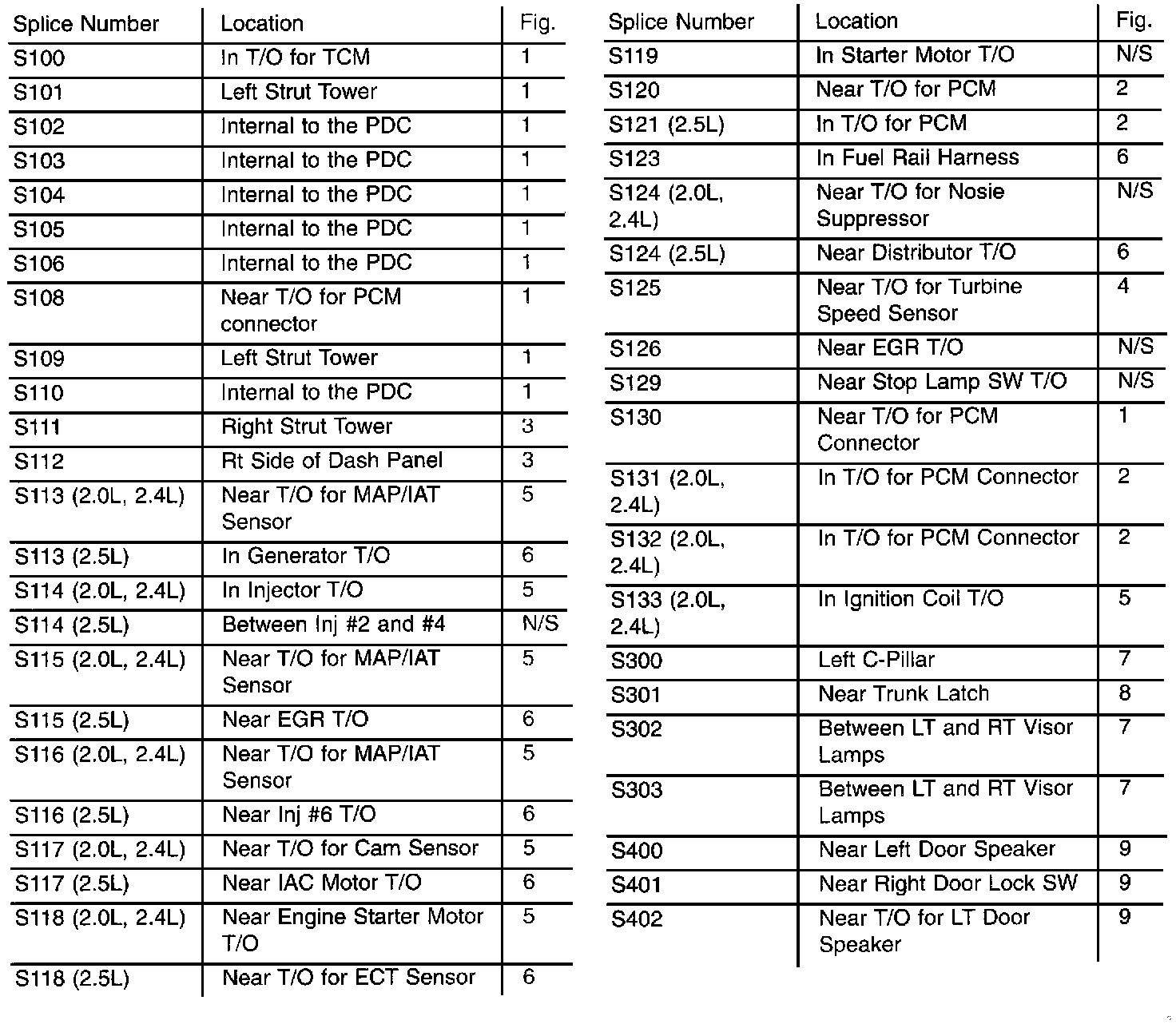 Splice Locations S100 To S402: