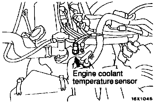 The Engine Coolant Temperature (ECT) sensor is located next to the thermostat housing Fig. 1.