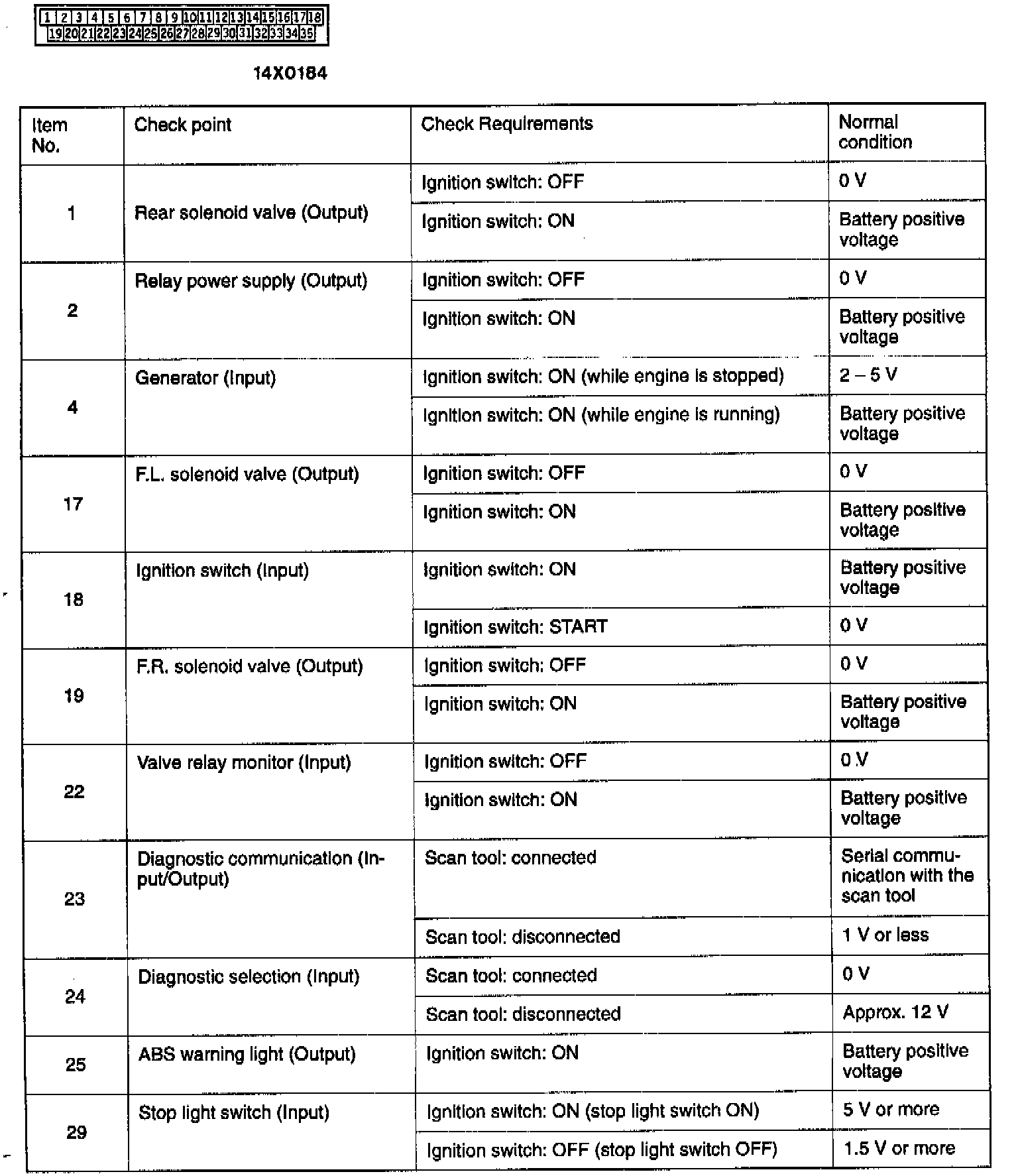 ABS-ECU Connector Terminal Arrangement