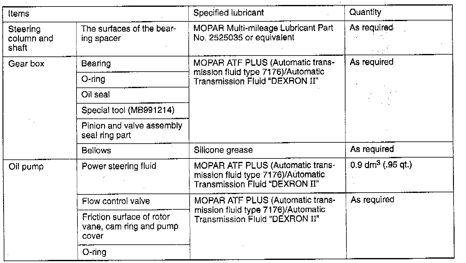Fluid Type Specifications