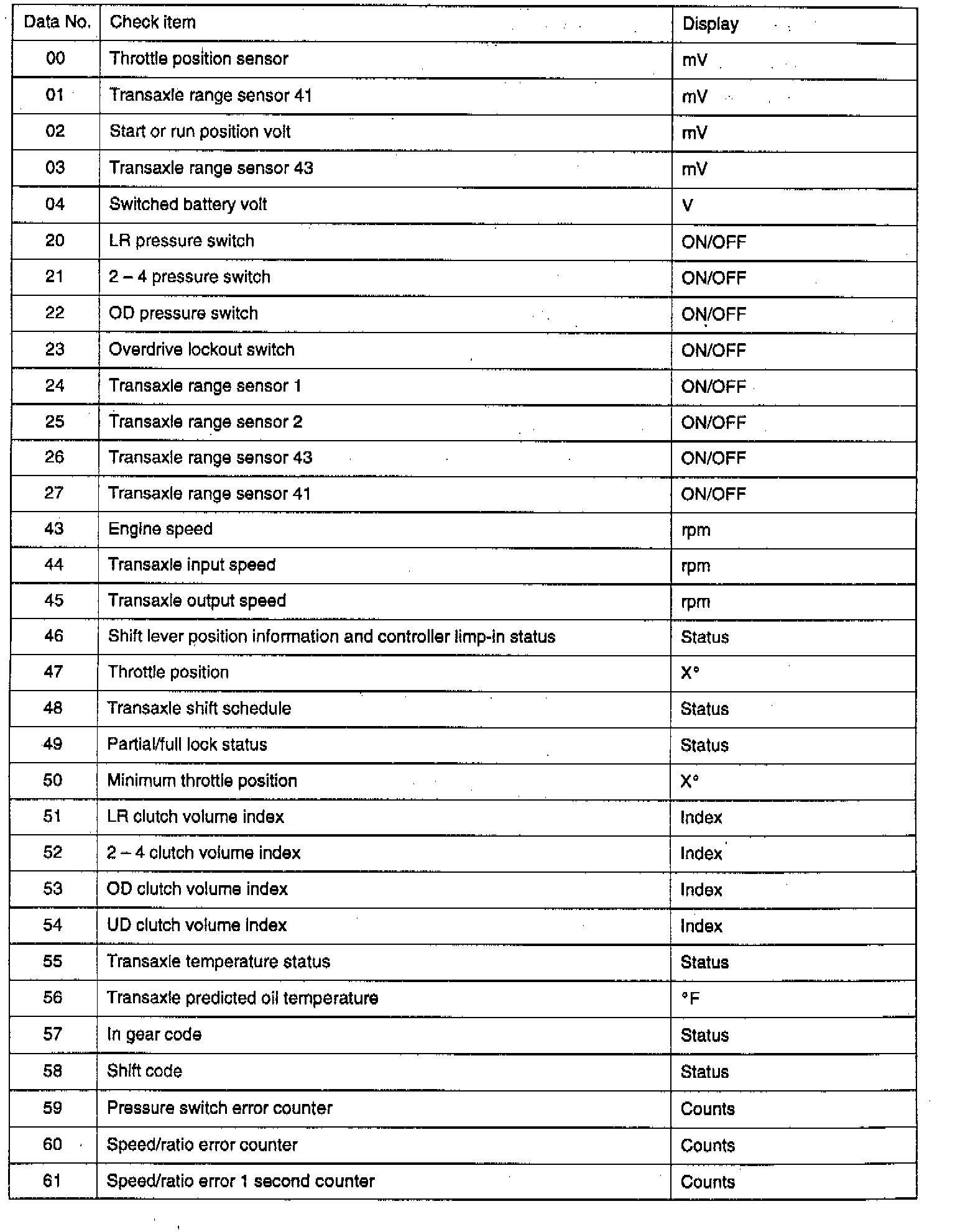 Service Data Reference Table