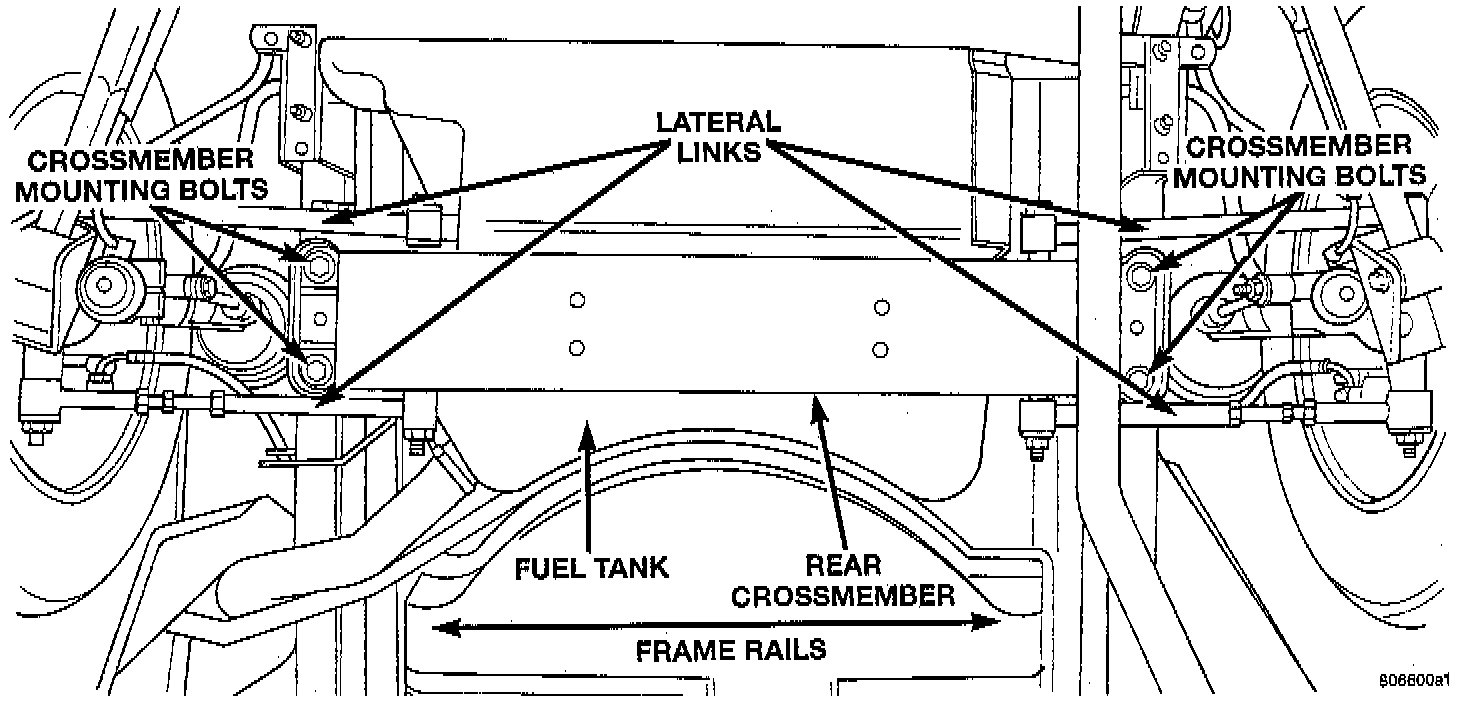 NOTE: If the rear suspension crossmember is replaced, be sure the correct crossmember is installed or the handling of the vehicle will be adversely affected.