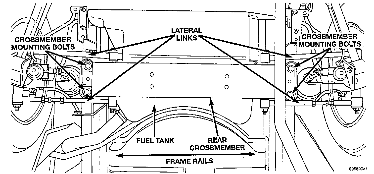 NOTE: When installing the lateral link to crossmember bolts, the bolts must be installed so the head of the bolt will be facing the front of the vehicle when the crossmember is installed in the vehicle.