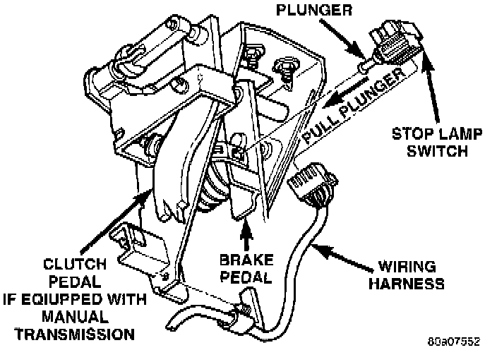 2. Twist and pull the switch assembly rearward from the brake bracket. After switch is free disconnect the wire connector and remove switch.