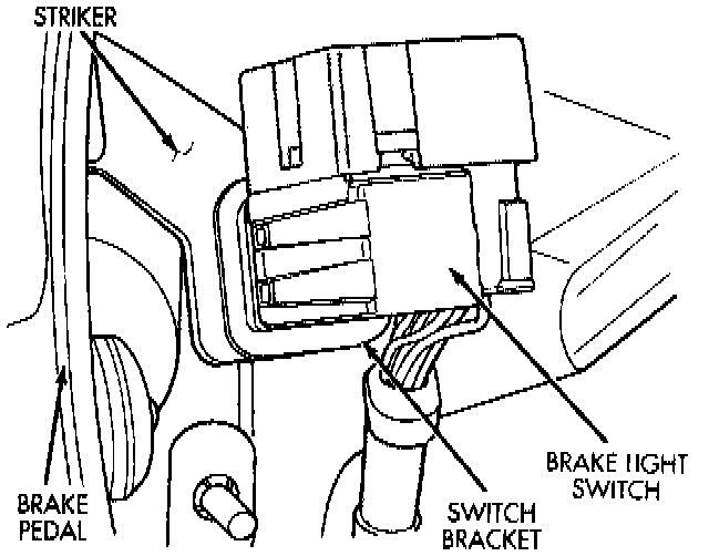 CAUTION: Do not use excessive force when pulling back on brake pedal to adlust the stop lamp switch. If to much force is used, damage to the stop lamp switch or striker can result.