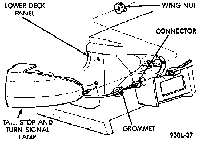 4. Install nuts to hold tail lamp to lower deck and quarter panel.