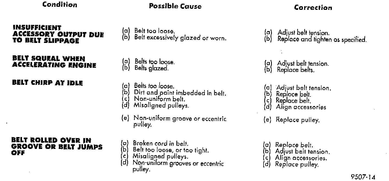 NOTE: Do not use any type of belt dressing or restorer on Poly-V-Belt and V-Belt
