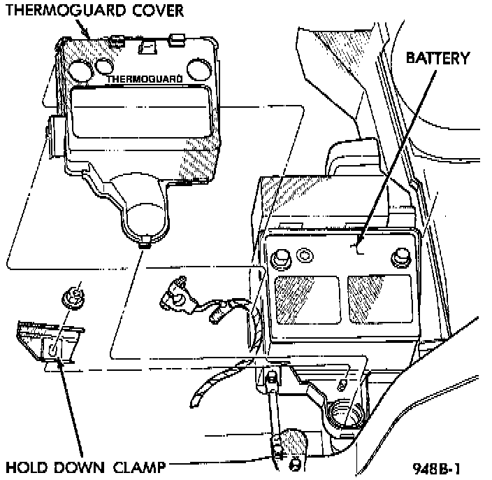 WARNING: TO PROTECT THE HANDS FROM BATTERY ACID, A SUITABLE PAIR OF HEAVY DUTY RUBBER GLOVES, NOT THE HOUSEHOLD TYPE, SHOULD BE WORN WHEN REMOVING OR SERVICING A BATTERY. SAFETY GLASSES ALSO SHOULD BE WORN.