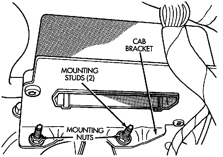 1. Install CAB and mounting bracket on mounting studs located on passenger side kick panel.