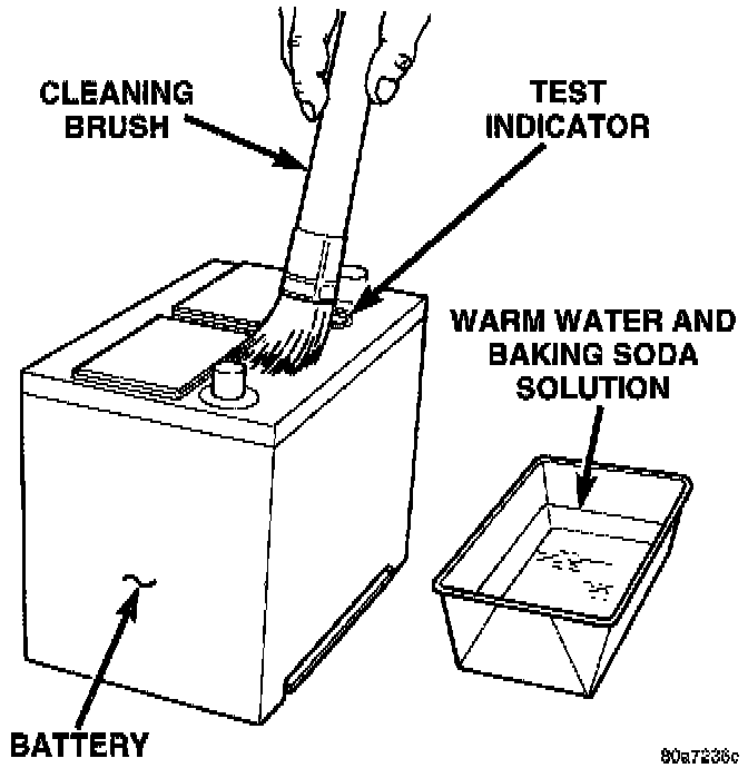 1. Clean top of battery with a solution of warm water and baking soda.