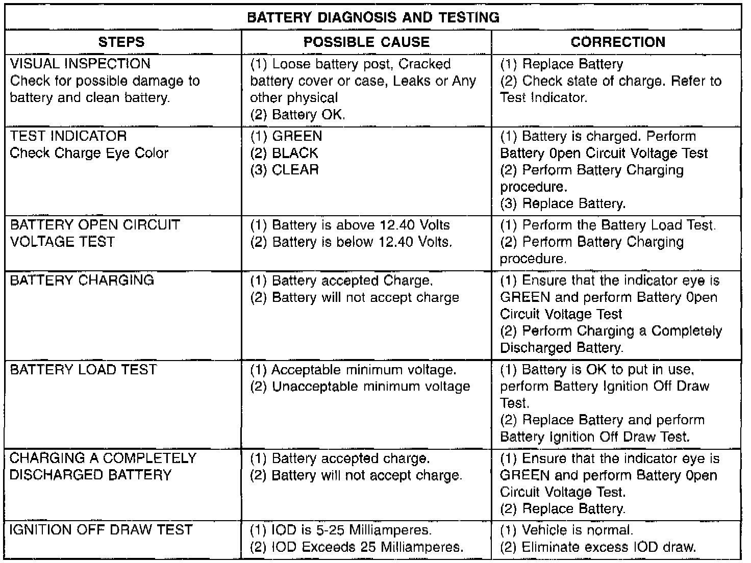 NOTE: BLACK OR DARK = 0 to 75% state-of-charge The battery is INADEQUATELY charged and must be charged until green dot is visible, (12.4 Volts or greater) before the battery is tested or returned to use.