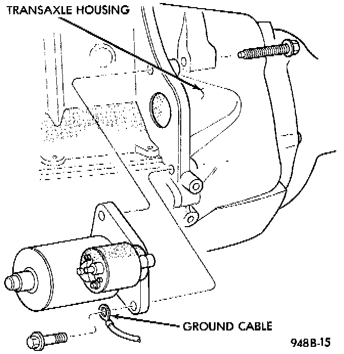 5. Remove two bolts attaching starter to transmission housing.