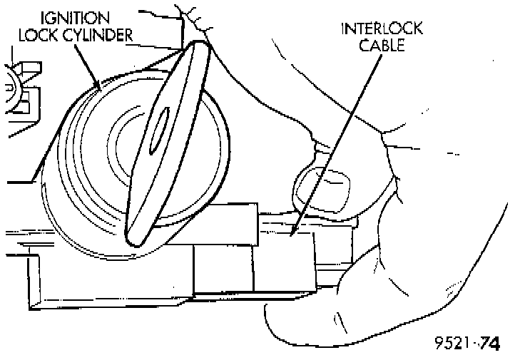 19. Remove interlock cable from under center console mounting bracket and out front of dash panel.