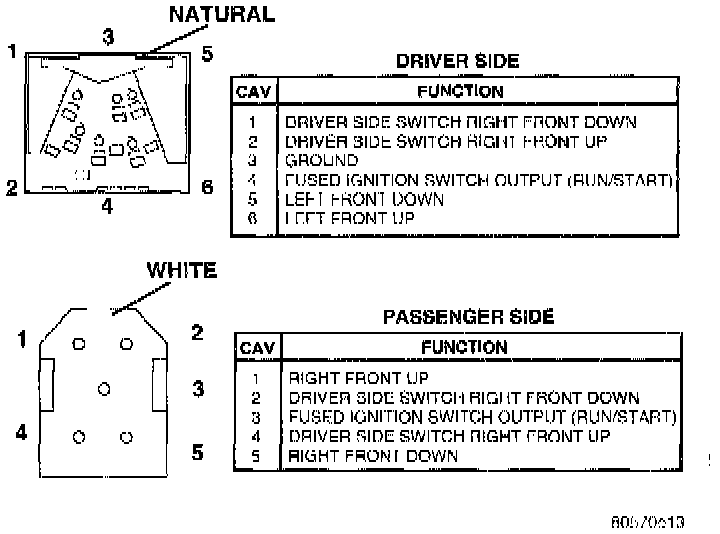 Remove switch for testing. Connect a voltmeter positive lead to Pin 4 and negative lead to Pin 3 of the switch connector. Turn ignition switch to the ON position. Voltmeter should read battery voltage. If OK, go to Window Switch Test. If not OK, check the 30 amp circuit breaker behind the fuse block or for a broken wire.